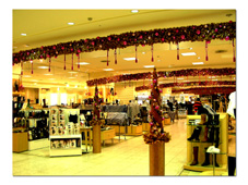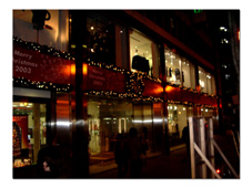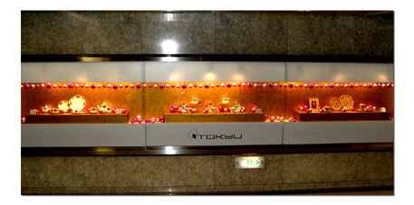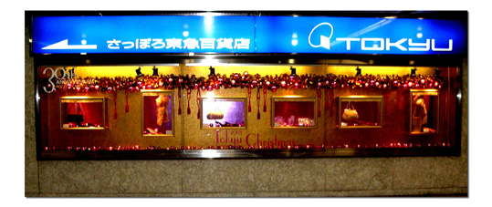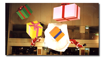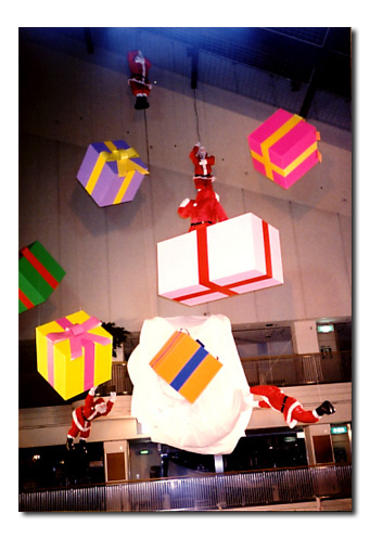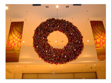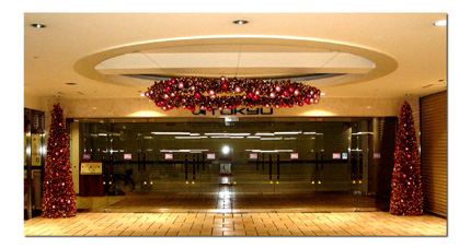 サンタは、本当にいるのでしょうか? サンタは、本当にいるのです。 柔らかな灯りが、忙しそうに、行き交う人々の背中を照らします。 今年流行の?ゴールドを基調に、展開されたクリスマス装飾。 特注の、巨大リース 次のページ